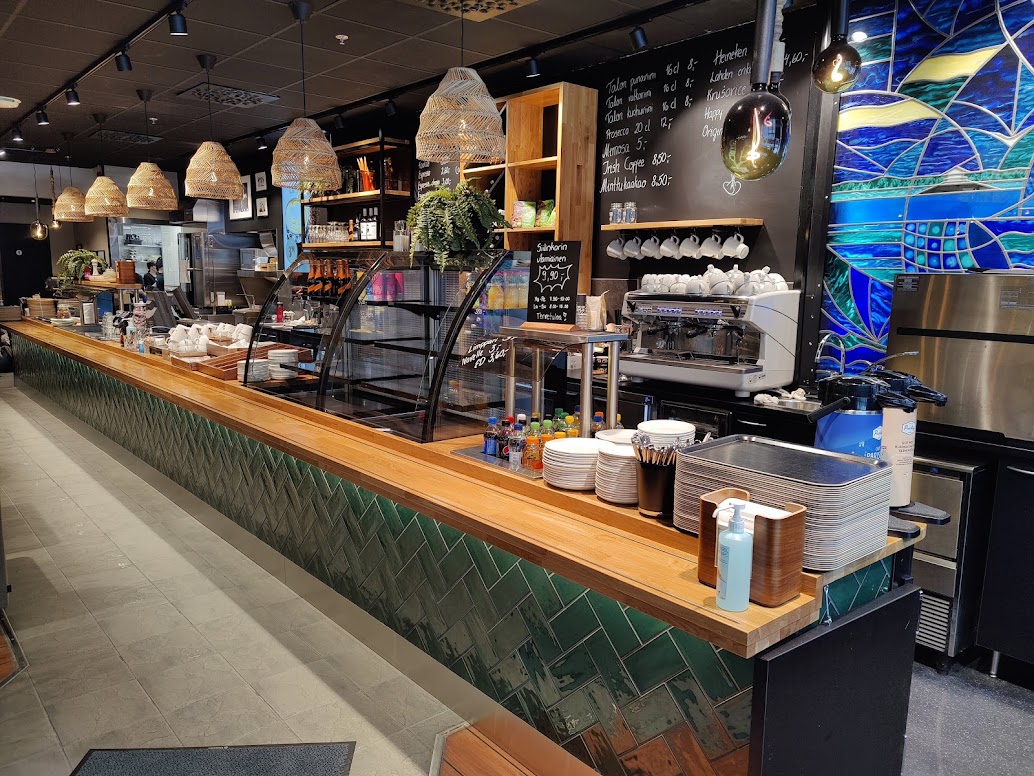 Tehtäväni tässä Café Siilinkarin RAVINTOLASUUNNITTELUSSA/ tunnelman muutoksessa oli mm. suunnitella uusi kalustelayout: Valitsin uudet tarvittavat irtokalusteet ja kartoitin vanhat. Uuden ja vanhan yhdistäminen luo mielenkiintoista kerroksellisuutta tiloihin kuten lopputuloksesta näkyy. Piirsin uudet kiintokalusteet kuten tiski jatarvittavat hyllyt. Suunnittelin uudet pintamateriaalit, valaisimet, vihersisustuksen, tekstiilit sekä somisteet. Seinämaalaukset toteutti Tare Brush suunnitelmieni mukaisesti kahvilan tarinaa ja historiaa kunnioittaen.